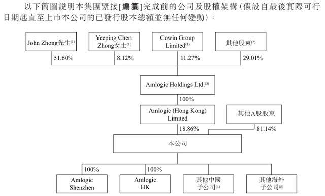 截至最后实际可行日期(2026年4月7日),晶晨半导体(香港)有限公司由AmlogicHoldingsLtd.全资拥有。AmlogicHoldingsLtd.由(i)JohnZhong先生,(ii)YeepingChenZhong女士(即JohnZhong先生的配偶),及(iii)CowinGroupLimited(由陈海涛先生(YeepingChenZhong女士的父亲)全资拥有)分别拥有51.60%、8.12%及11.27%的权益。根据中国法律及法规的规定,JohnZhong先生、YeepingChenZhong女士及陈海涛先生均被视为一致行动人士,故被视为于彼此所持有的股份中拥有权益。因此,根据证券及期货条例,AmlogicHoldingsLtd.、JohnZhong先生、YeepingChenZhong女士及陈海涛先生被视为于Amlogic(HongKong)Limited所持股份中拥有权益。