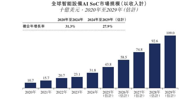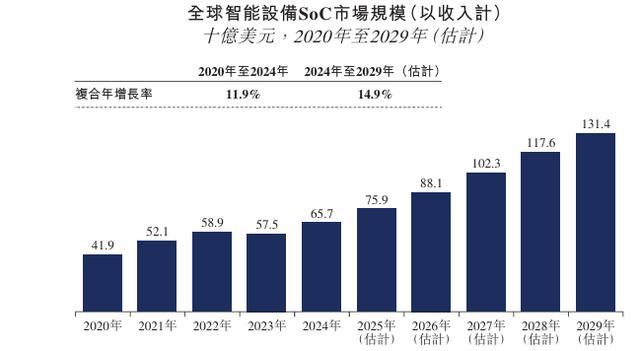 据招股书,该公司是领先的系统级半导体设计厂商,面向智慧家庭、智慧办公、智慧出行、娱乐教育、工业生产场景,提供卓越的智能终端控制与连接解决方案,包括智能多媒体与显示SoC主控芯片、AIoTSoC主控芯片、通信与连接芯片、智能汽车SoC芯片等,致力于赋能全球智能终端从万物互联走向万物智联。根据弗若斯特沙利文报告,按2024年的相关收入计,该公司在专注于智能终端SoC芯片的厂商中位列全球第四(全球市场份额为1.2%),在家庭智能终端SoC芯片领域位列中国内地第一、全球第二(全球市场份额为17.7%)