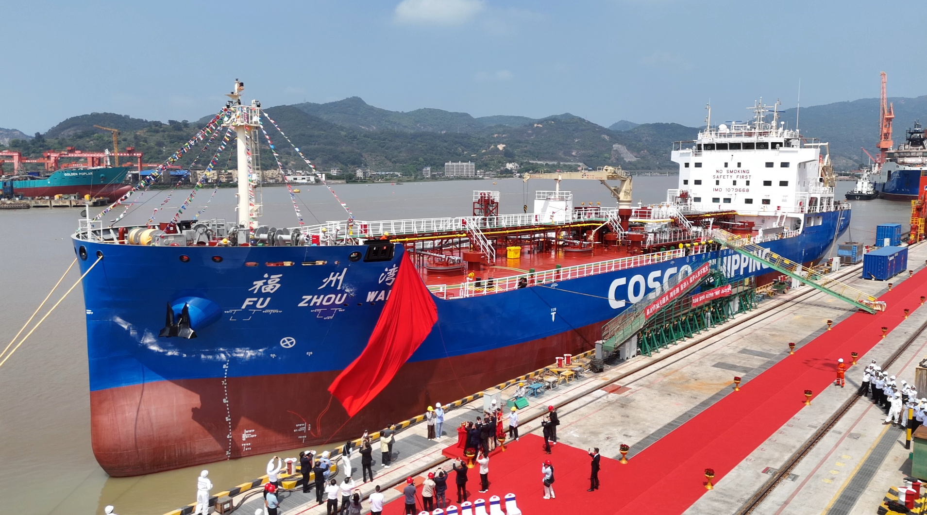 9000DWT特种液货船(MW518-2)被命名为“福州湾”轮,总长119.8米,设计航速13节,续航能力达12000海里。“福州湾”轮采用全新低阻力船体线型,并搭配多重节能装置,能效与减排水平处于行业先进地位。货舱经特殊设计,能够安全承运沥青、闪点大于60℃的成品油等多种液货。此外,船舶配备先进的航行与数智化监控系统,显著提升了安全管控与运营效率,是一艘技术含量高、环保标准严的现代化特种船舶。