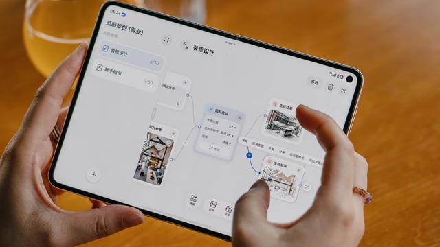 AI 灵感妙创则把手绘和 AI 生图的链路合并到了一起。把 AIGC 能力原生嵌入华为笔记 App 之后,你可以在阔屏的一边用手写笔画草图,另一边直接看到 AI 生成的成品。画一只潦草的简笔画、写一句需求,很快就能拿到可用的设计稿。这条从灵感到成品的链路,过去必须跨越多个设备、多个 App,现在第一次被压缩到了一块屏上。